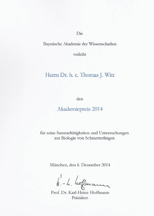 Verleihung des Akademiepreises 2014 an Doktor h.c. Thomas J.