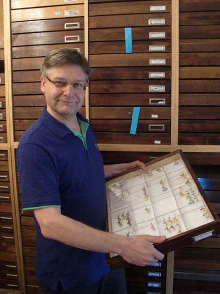 Alexander Schintlmeister is an Austrian, born on 21. February 1957 in Dresden, Germany. From an early age he was fascinated by insects, in particular butterflies and moths, forming his first collection of butterflies, unaided, at the age of 8. After finishing school, he studied physics at the Technische Universität Dresden, close to the entomological library at the Tierkundemuseum Dresden where he spent much of his spare time. After graduating with a Diploma in the physics of solid matter in 1979, he completed a doctorate in 1987 with Humboldt-Universität zu Berlin on the biogeography and evolution of the Palaearctic Notodontidae. He took part in a two-month expedition to the Caucasus, Russia at the age of 16, subsequently leading an expedition to study tropical moths in 1979 to Sumatra with Dr. Eduard W. Diehl. Later he paid annual visits to many East Asian countries: Japan, China, Vietnam, Thailand, Myanmar, Malaysia, all major islands of Indonesia (excluding New Guinea), the Philippines, India, Sri Lanka and collected at some of the most interesting “hot spot” localities, discovering many new and interesting species. He visited almost all museums and private individual keeping important collections of moths in Europe and some in Asia. In 1989 he was politically active in the peaceful revolution in East Germany, reducing the opportunities for longer expeditions abroad and spare time for Lepidoptera. But from 2007 he is using more time for Science and less for business. The Lepidoptera collections of Alexander Schintlmeister (Notodontidae, Lymantriidae and a general collection of European Lepidoptera) include some hundred primary types and some thousands of Paratypes. About 300.000 specimens and 8800 genitalia slides are kept in the author's house in Dresden. The image-collection (including most Notodontidae types, and further interesting specimens from many different collections) contains more than 22.000 pictures. Actual he is working on a world-catalogue of the Notodontidae. |